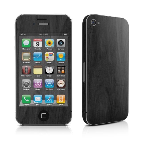 Apple iPhone 4 / 4s Skin Design Feuille Autocollant Sticker inclu wallpaper Display image - Black Woodgrain Holz Skin Design