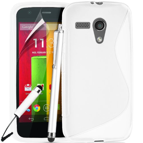 Supergets Coque en gel TPU pour Motorola Moto G avec protège-écran et chiffon de nettoyage plus 2 stylets capacitifs de couleurs différentes - Blanc - blanc,