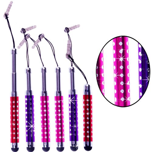 6x mini diamant en cristal coloré téléphone portable de luxe Tablet Stylus Pen Set Pen avec la poussière de prise souple Stylus Pen strass Bling écran tactile