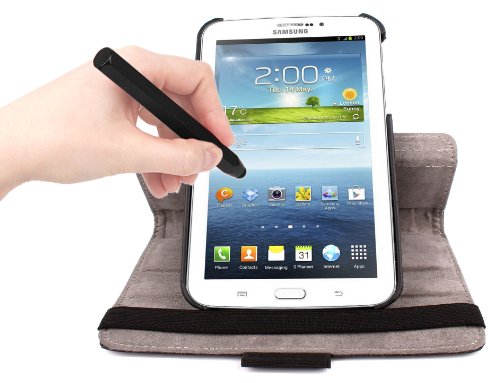 - Etui rotatif sur mesure pour tablette Samsung Galaxy Tab 3 7.0 (7") (NON compatible Samsung Tab 3 LITE) en similicuir noir qui apporte robustesse et durabilité à votre tablette