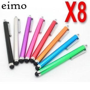 eimo Lot de 8 stylets capacitifs universels pour iPad 1/2, iPhone 4, HTC, tablette PC, tablettes Asus, Advent, Samsung Galaxy, téléphones portables, PC, PlayBook et téléphones BlackBerry, Android et autres appareils à écran capacitif Assortiment de couleurs