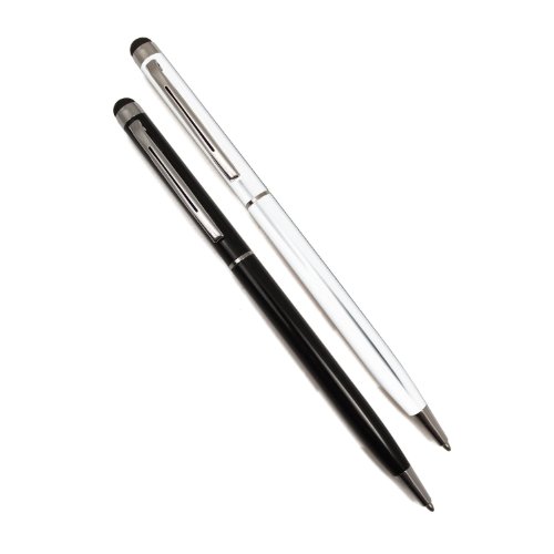 2-in-1 Pen TWIN PACK Noir, Argent Fonction Stylus écran tactile double (et un stylo à encre à bille) - iPad 2 & 3, tous les modèles Kindle, iPhone (4) 4S, HTC, Tablet PC, Tablette Asus, Advent, Samsung Galaxy S3 (S2), téléphones mobiles, PC, BlackBerry PlayBook & Phones, A